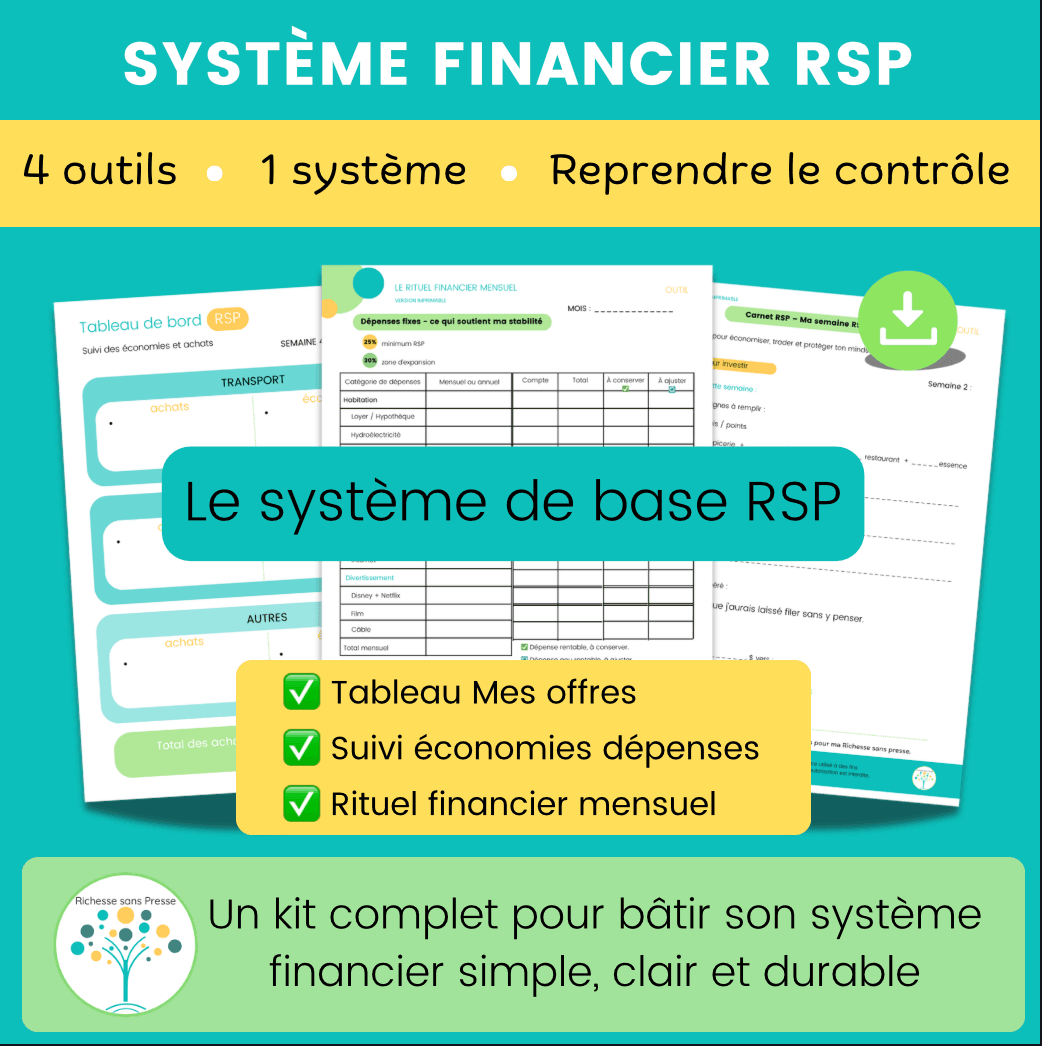 C’est pour cette raison que j’ai créé le Système financier essentiel RSP, un bundle fondation qui réunit 4 outils complémentaires :